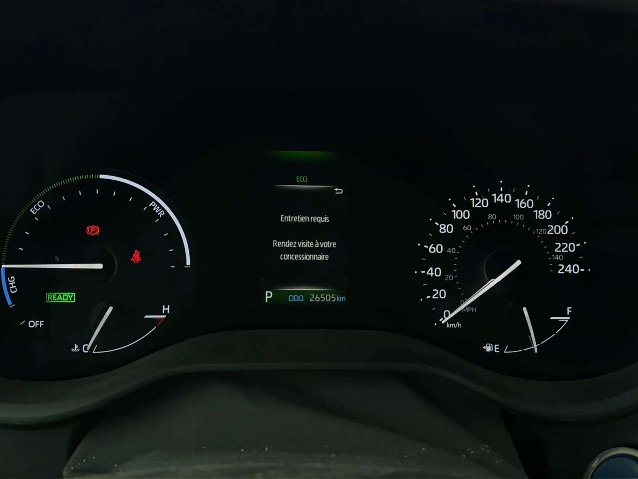 • gauges -inc: speedometer, odometer, engine coolant temp, tachometer, power/regen, traction battery temperature, trip odometer and trip computer